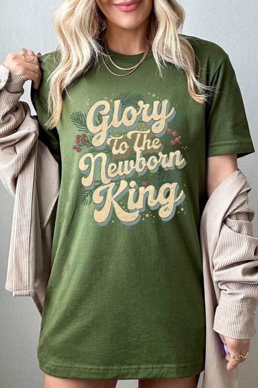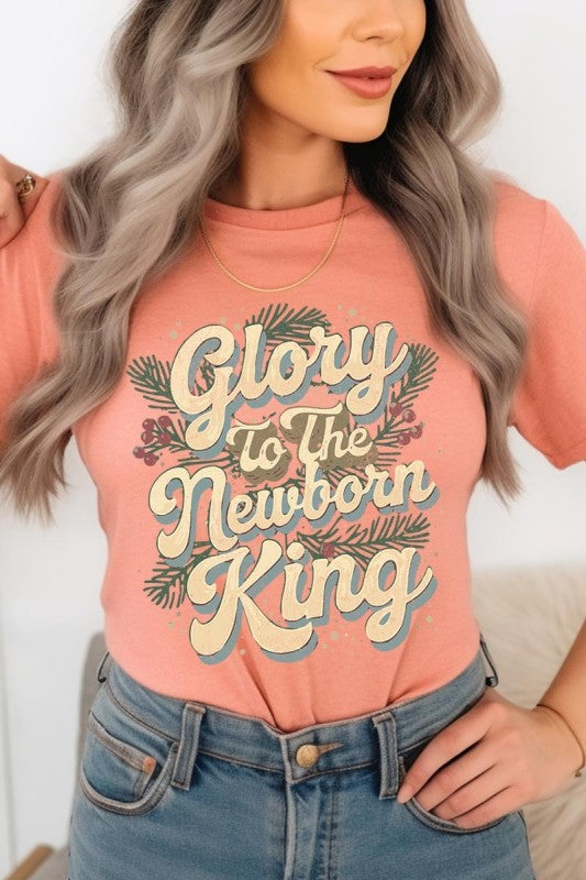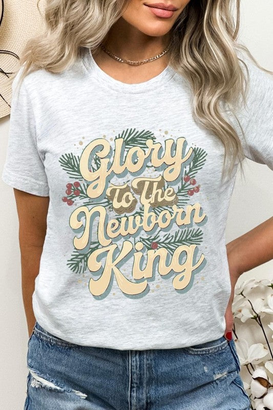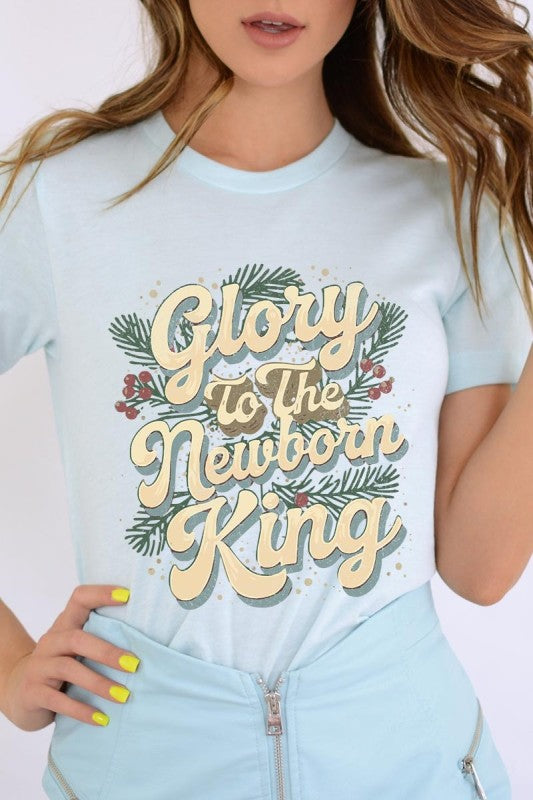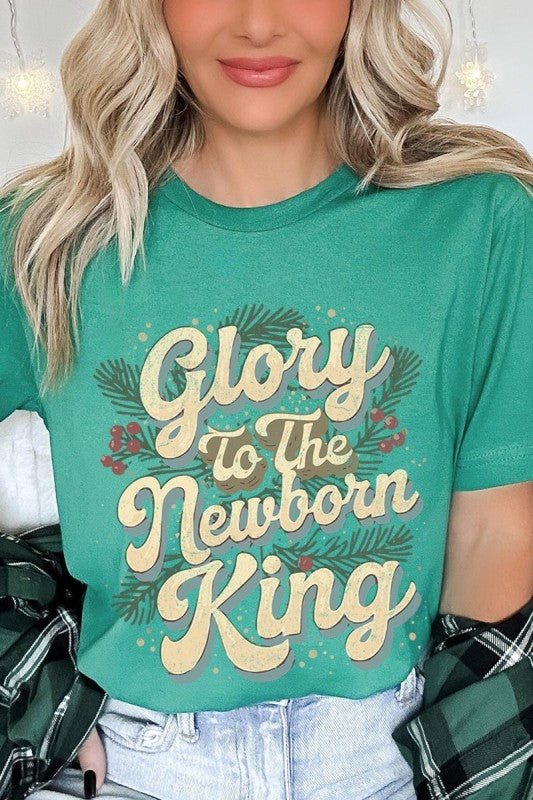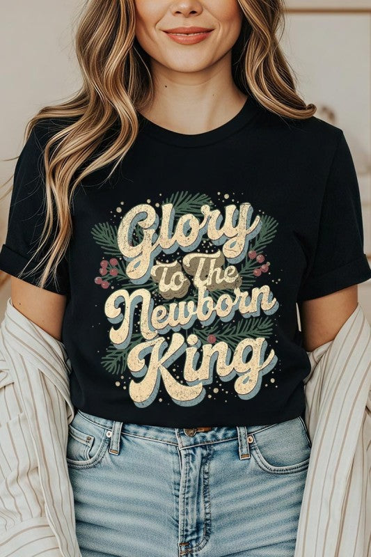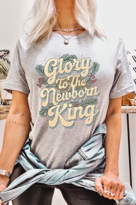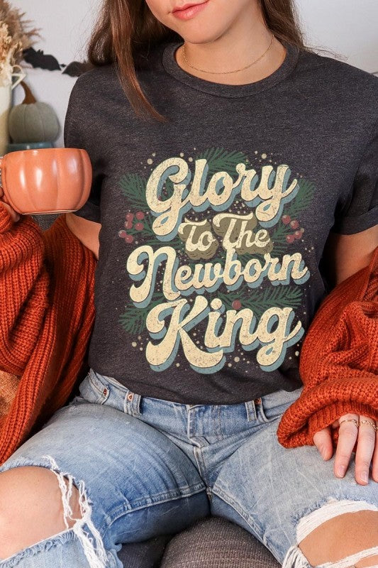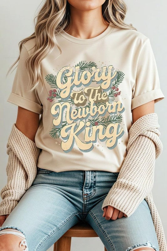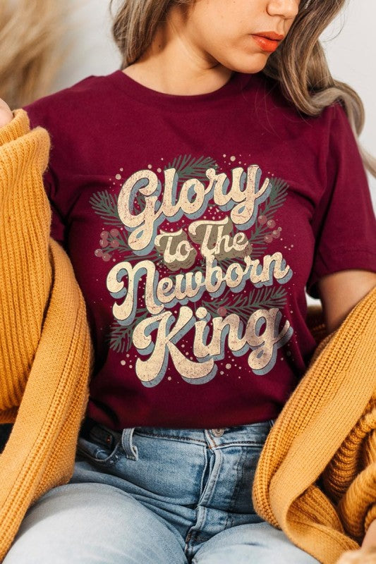 glory to the newborn king tee, christian christmas shirt, jesus is born top, nativity tee, faith based holiday shirt, worship christmas tee, religious christmas top, church christmas Graphic Tee.