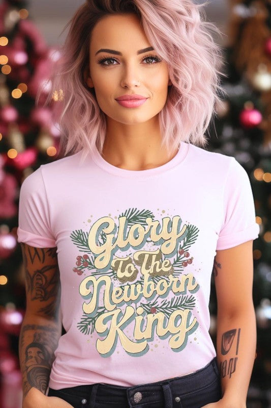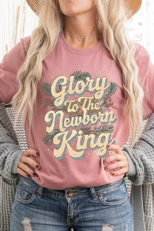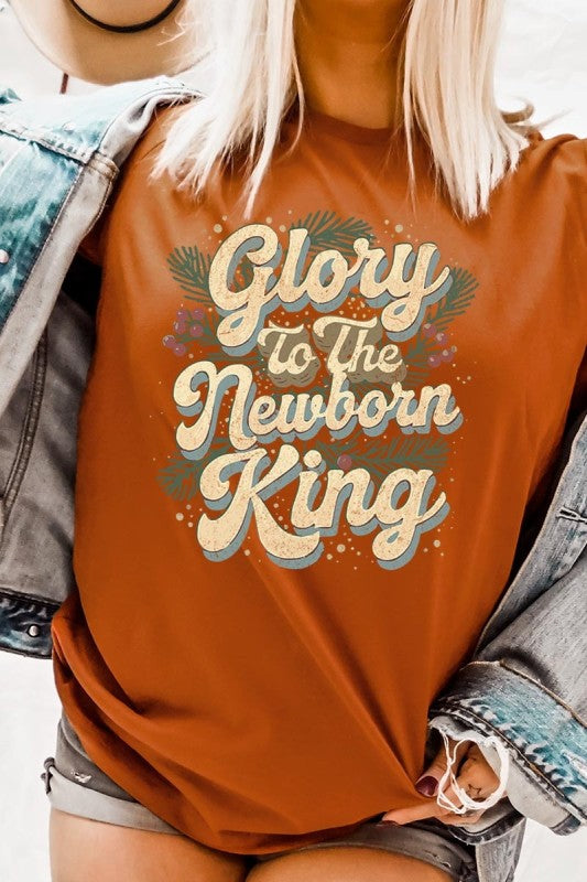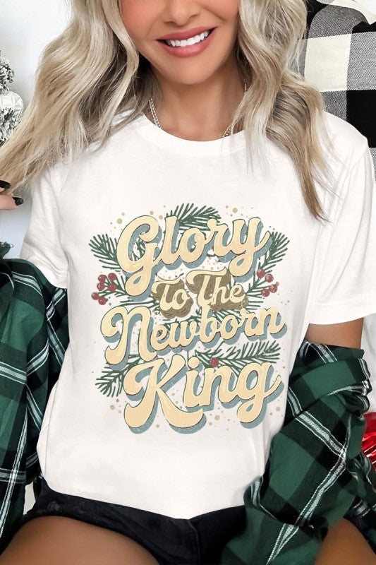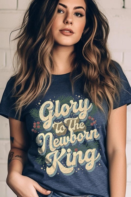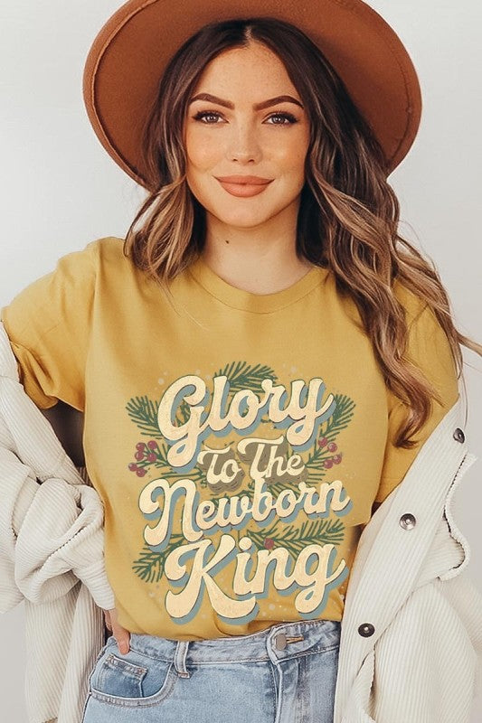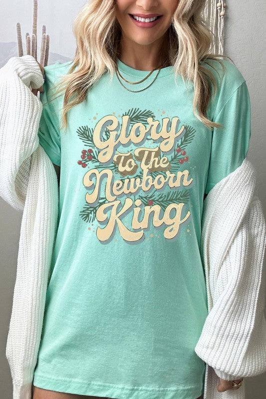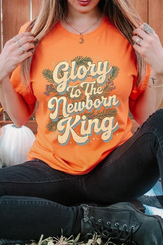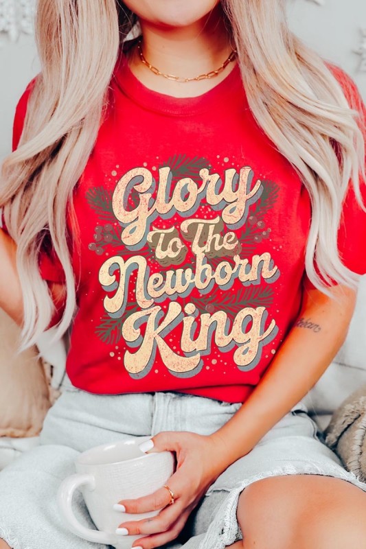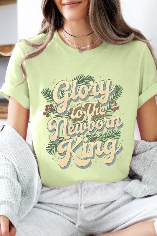 glory to the newborn king tee, christian christmas shirt, jesus is born top, nativity tee, faith based holiday shirt, worship christmas tee, religious christmas top, church christmas Graphic Tee.